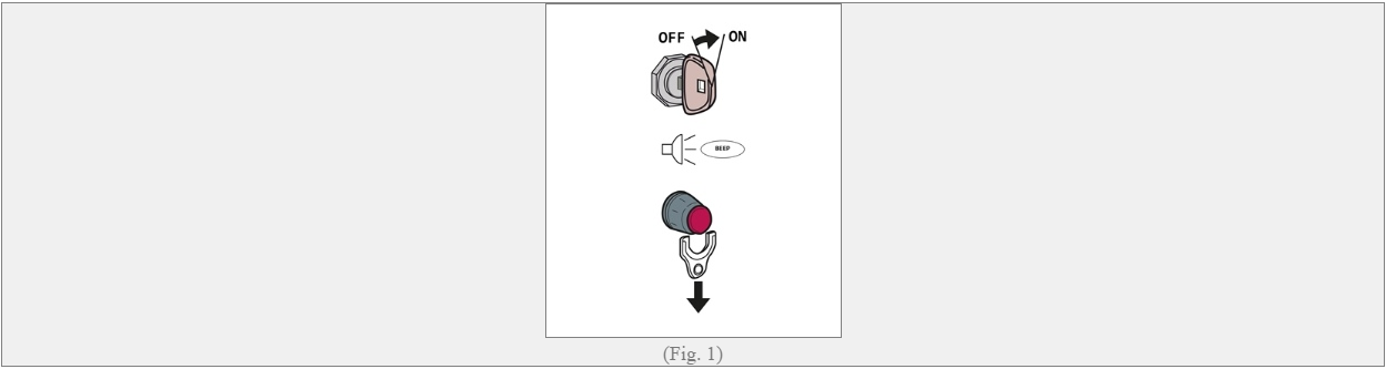 - Turn the key to "ON". Disconnect the safety cord within a second of the buzzer finishing. (Fig 1)