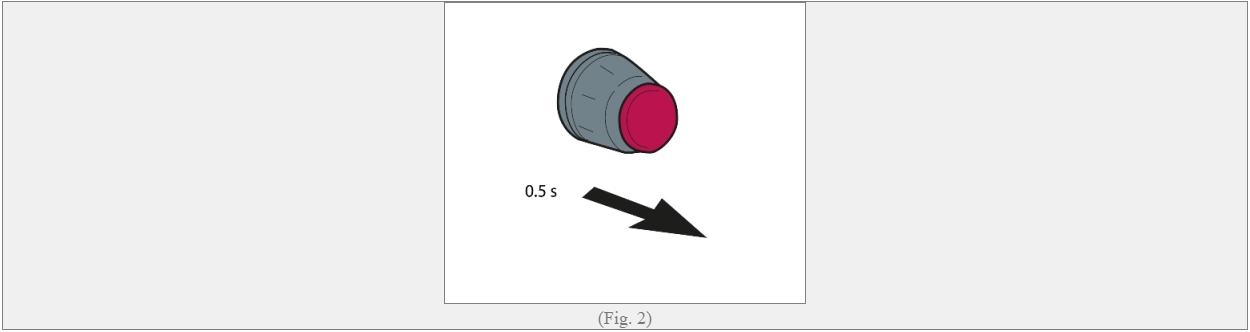 - Wait 5 to 10 seconds, then pull the red knob on the emergency switch and release it within 0.5 seconds (Fig 2)